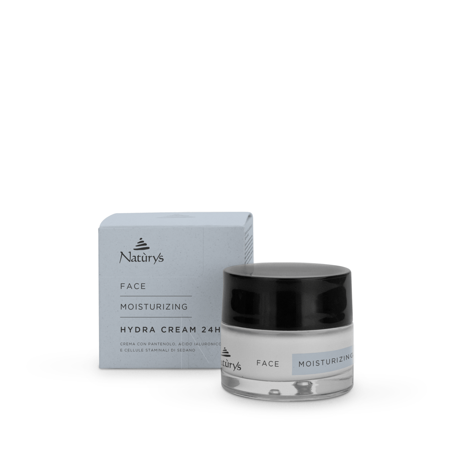 NATURYS 24 val. Drėkinamasis Kremas – drėkinamasis kremas su hialurono rūgštimi ir pantenoliu, ilgai palaiko odos drėgmę ir komforto pojūtį.